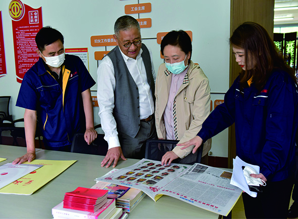 5月25日上午,在招遠市委副書記蔡豪禮,市總工會黨組書記、常務(wù)副主席王利亭,副主席林國卿陪同下,煙臺市人大常委會黨組副書記、副主任、市總工會主席劉洪波一行7人蒞臨金潮控股集團公司,對企業(yè)安全生產(chǎn)、工會建設(shè)、疫情防控等工作進行觀摩指導(dǎo)。