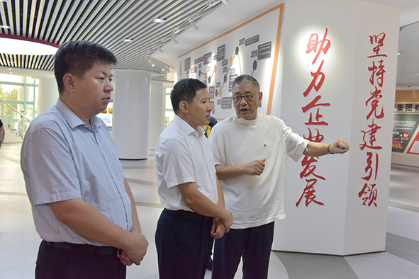 7月5日下午,煙臺(tái)市行政審批服務(wù)局局長(zhǎng)隋運(yùn)升一行五人,蒞臨金潮新材公司調(diào)研企業(yè)經(jīng)營(yíng)情況,招遠(yuǎn)市政府副市長(zhǎng)劉超、行政審批服務(wù)局局長(zhǎng)王克卓等領(lǐng)導(dǎo)陪同。